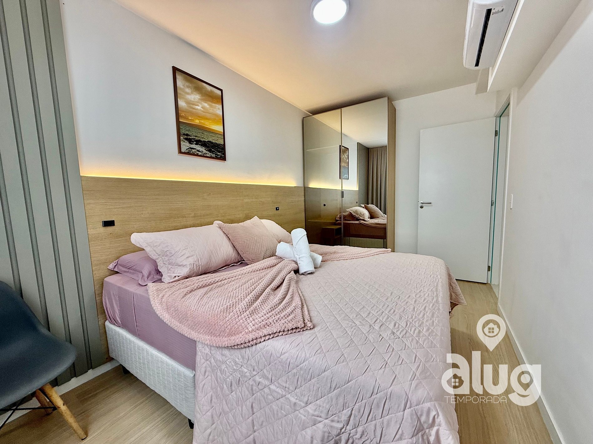Ar-condicionado em todos os cômodos, Wi-Fi rápido, cozinha equipada, estacionamento gratuito e uma sacada perfeita p/ relaxar e contemplar o horizonte.