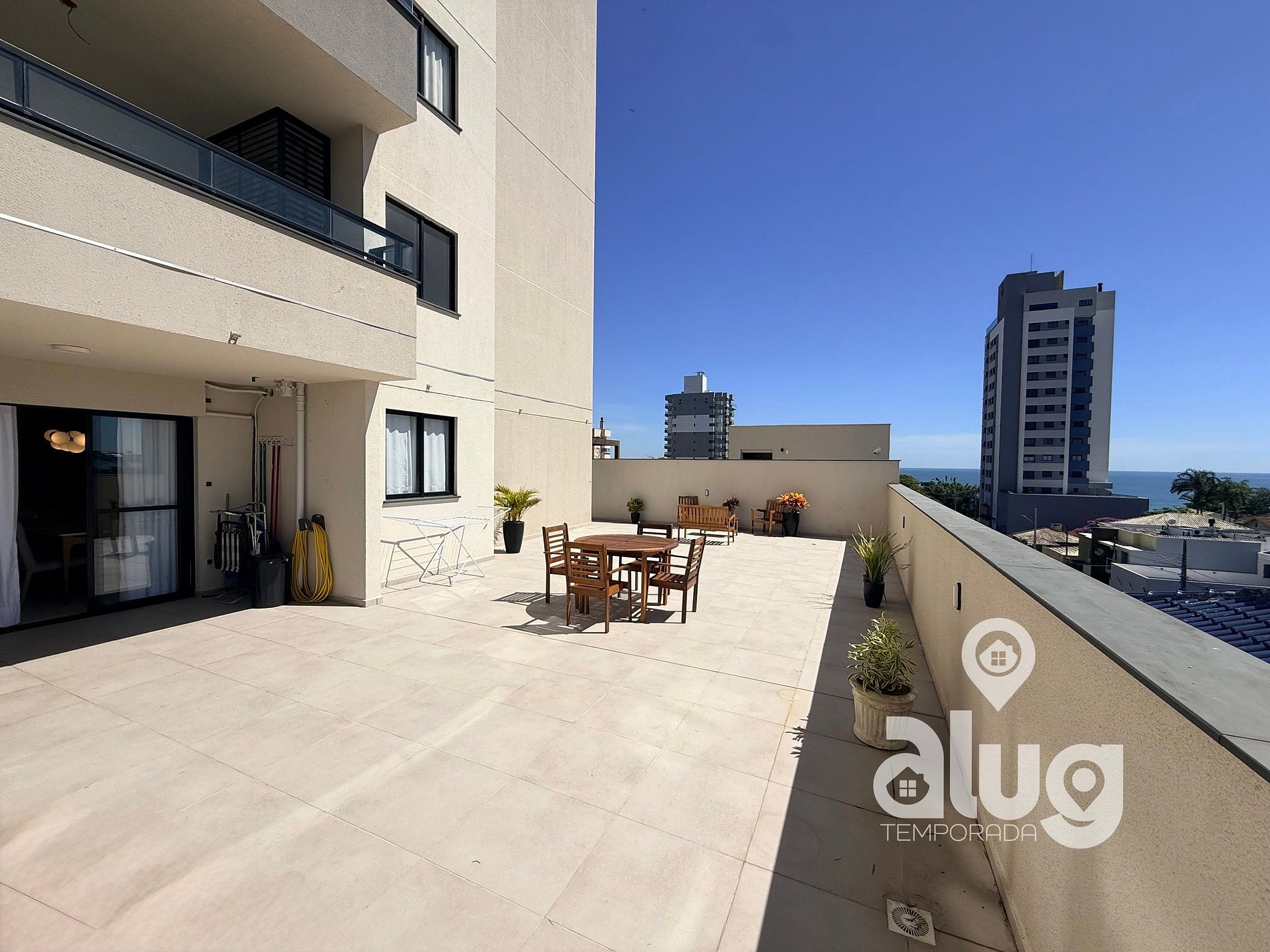 Os hóspedes terão acesso exclusivo a todo o apartamento, incluindo a sacada com vista para o mar, cozinha, área de serviço e garagem.
