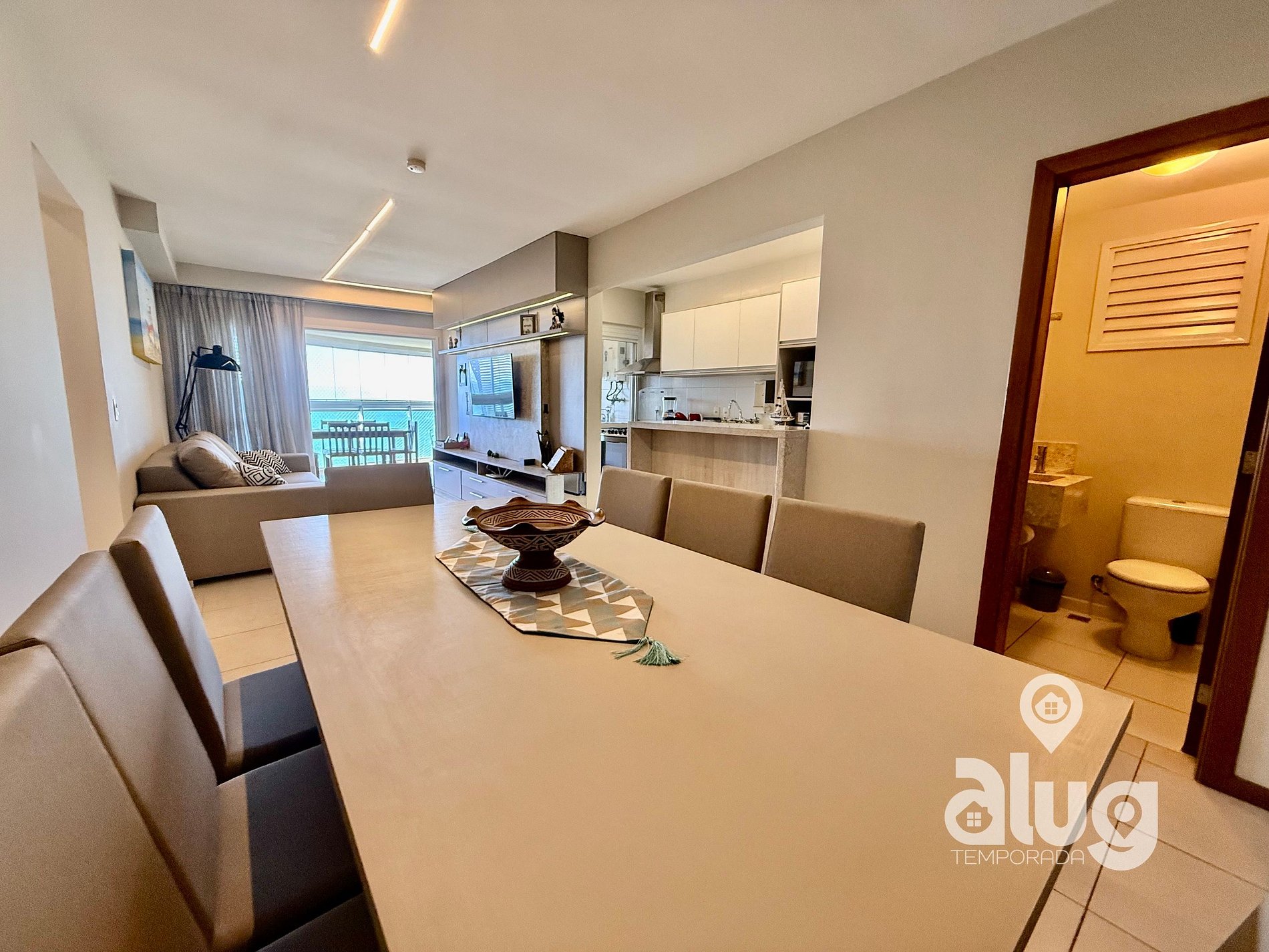 Os hóspedes tem acesso a todo o apartamento e também as áreas de lazer (piscinas, espaço kids, salas de jogos, playgrounds, quadra poliesportiva e outros), com exceção para os salões de festas, espaços gourmets e churrasqueiras externas.