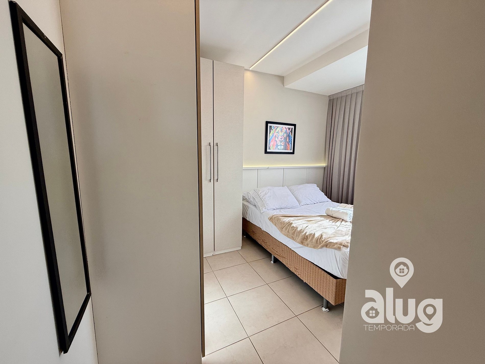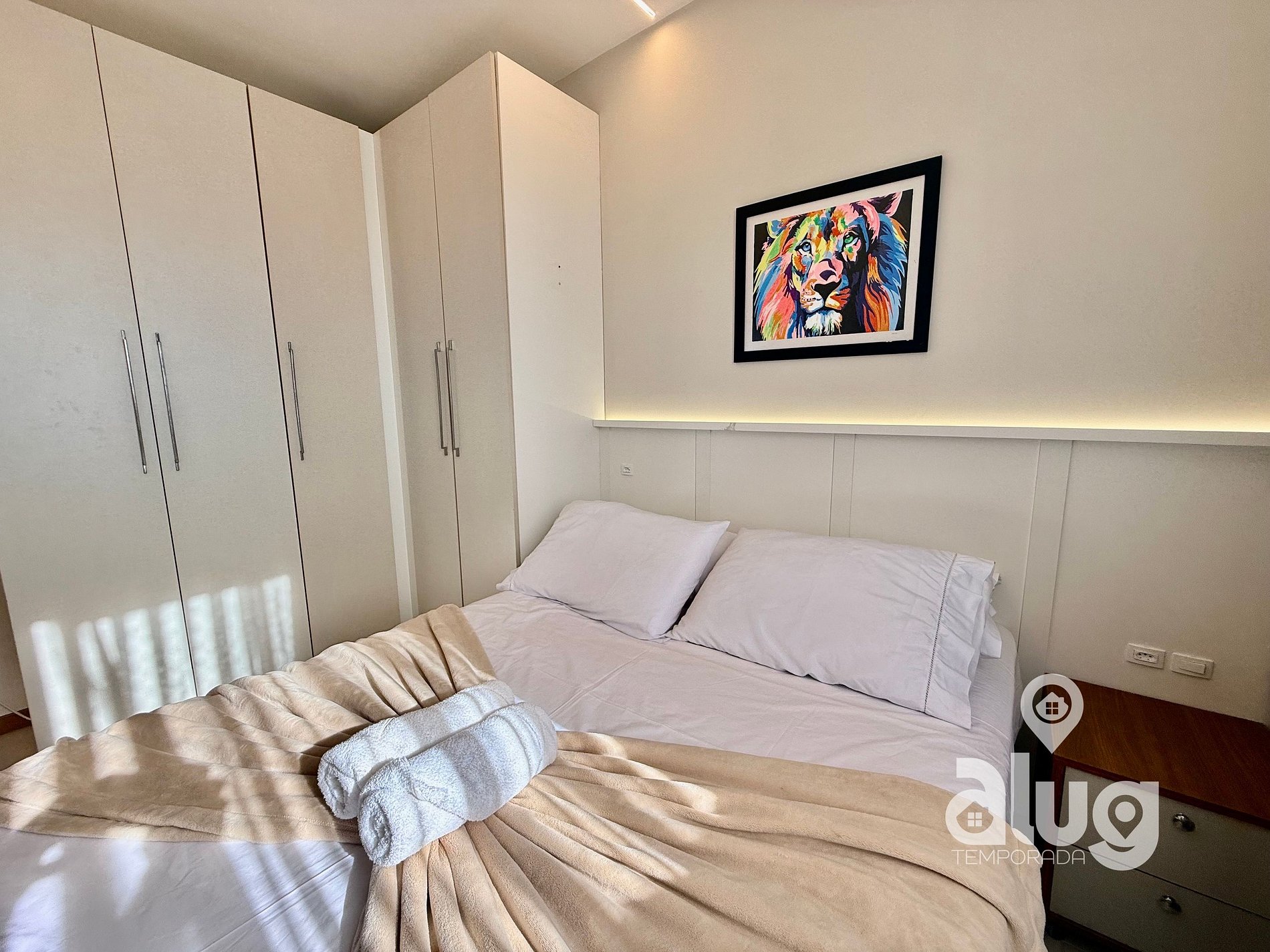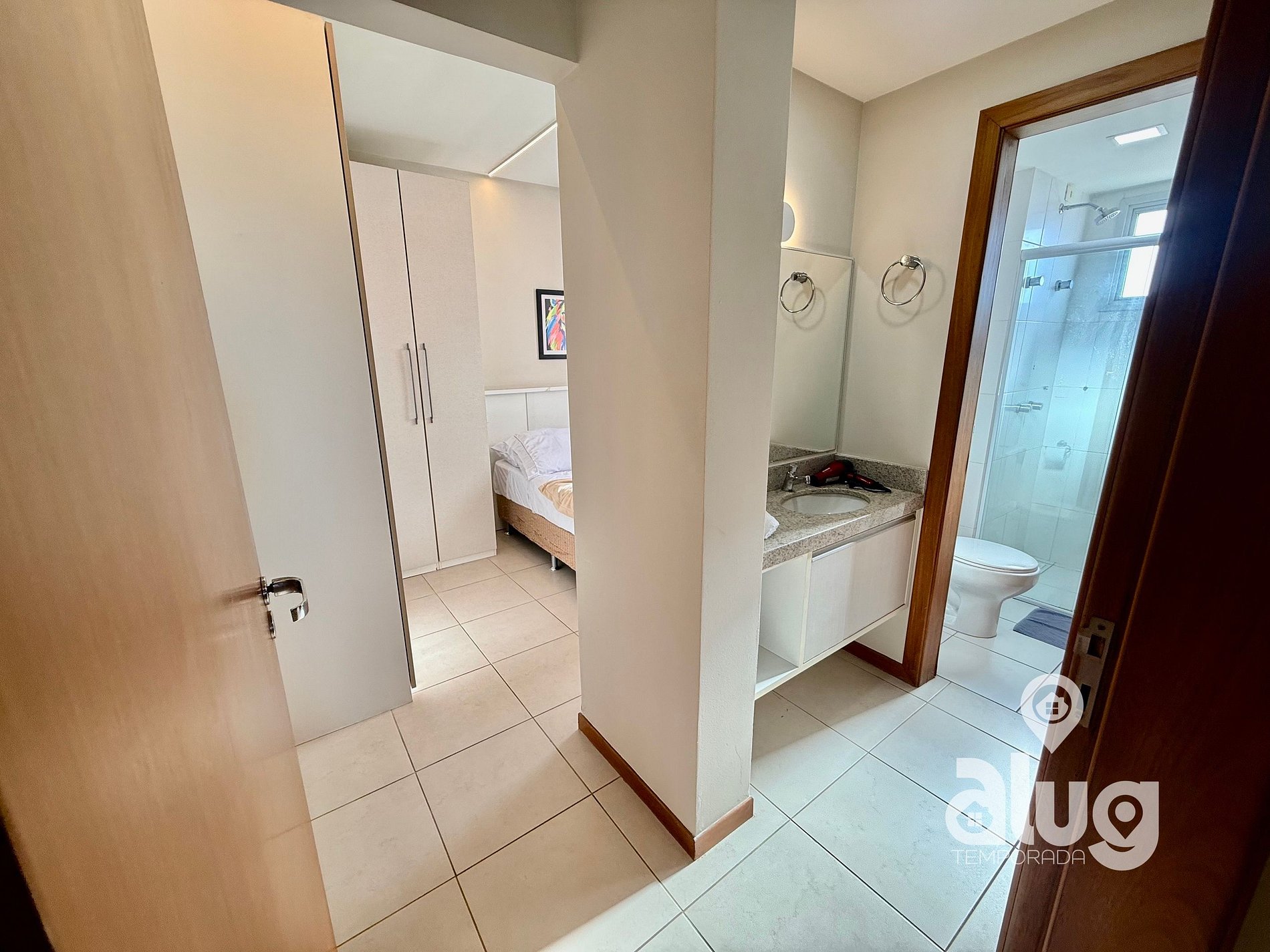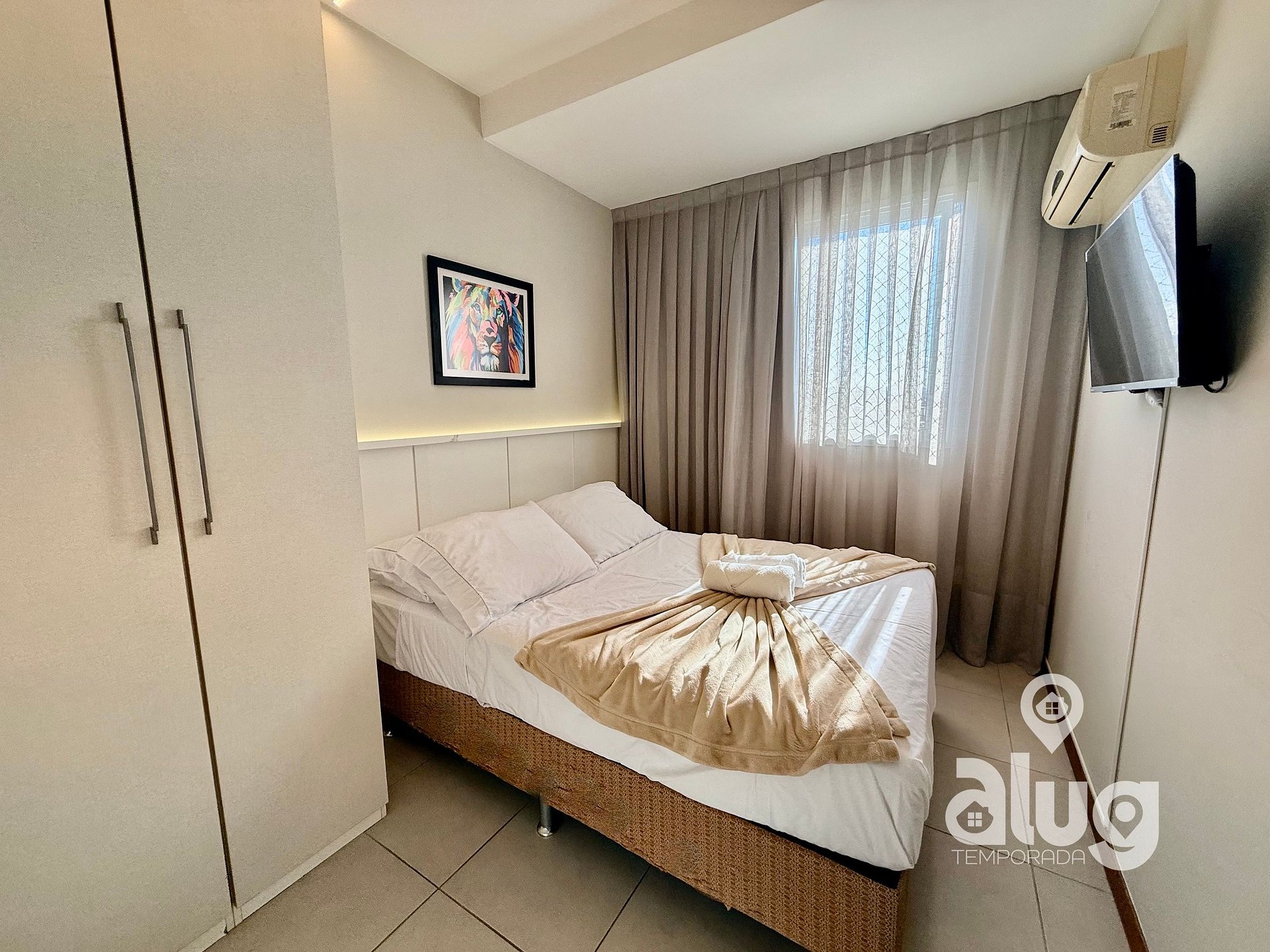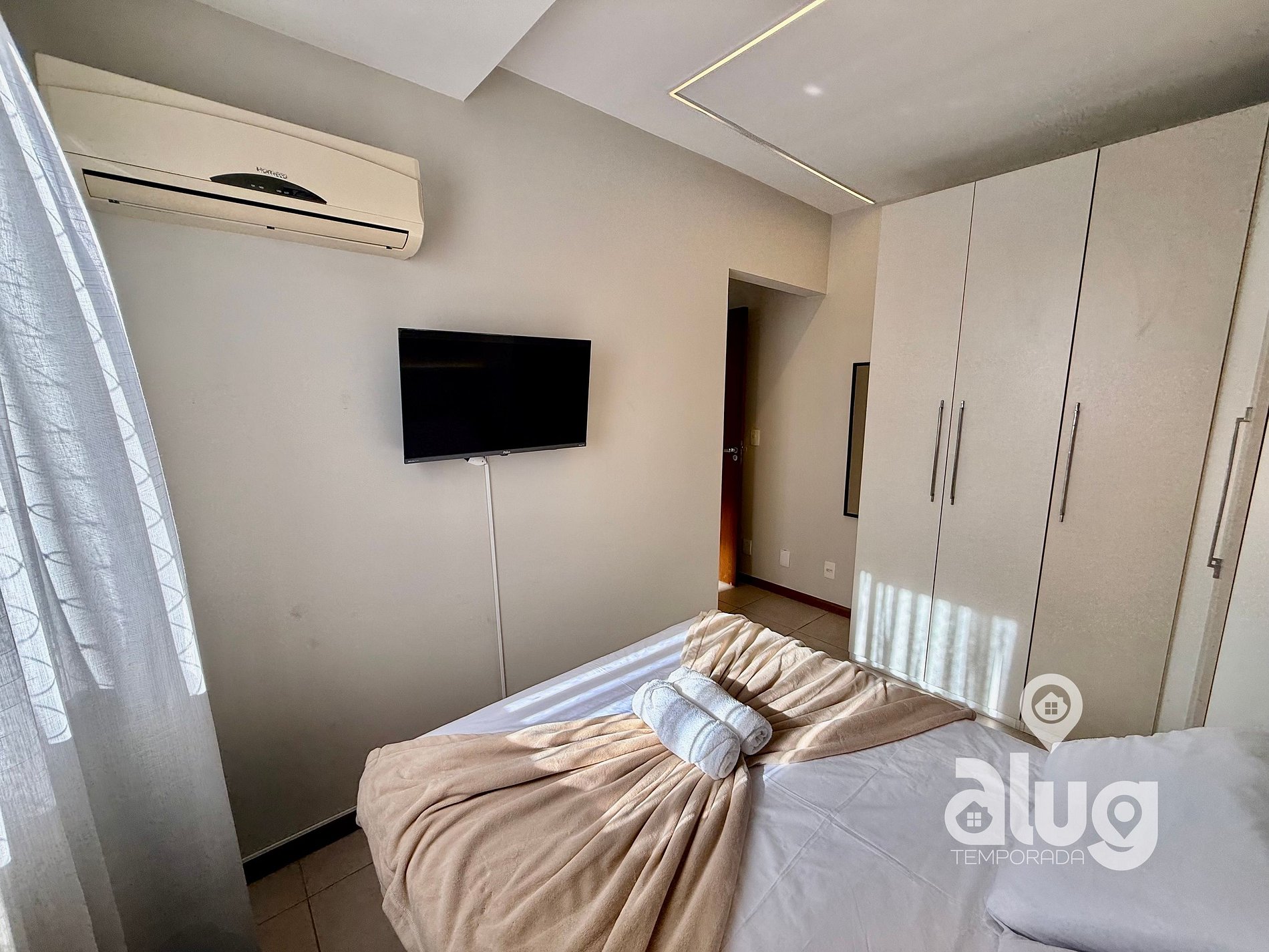 4. Quarto Casal (demi suite): Cama casal, Smart TV e ar condicionado.