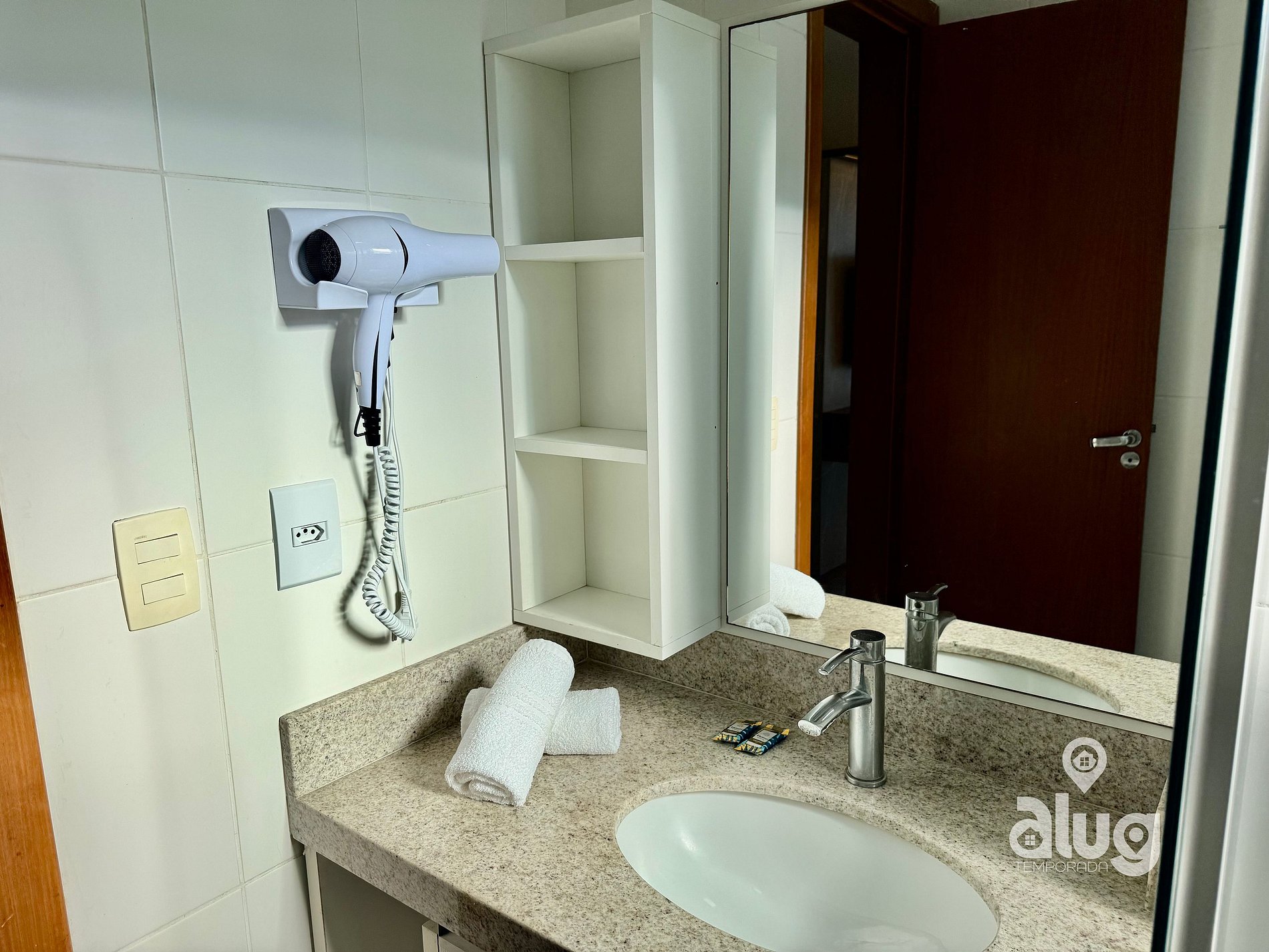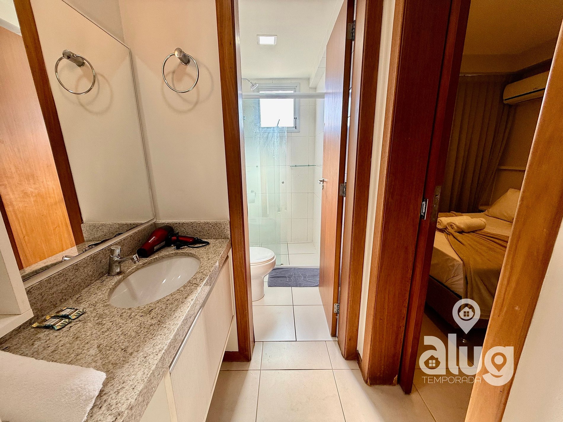 As piscinas e demais áreas de lazer seguem o horário de funcionamento do condomínio. O acesso será informado no check-in.