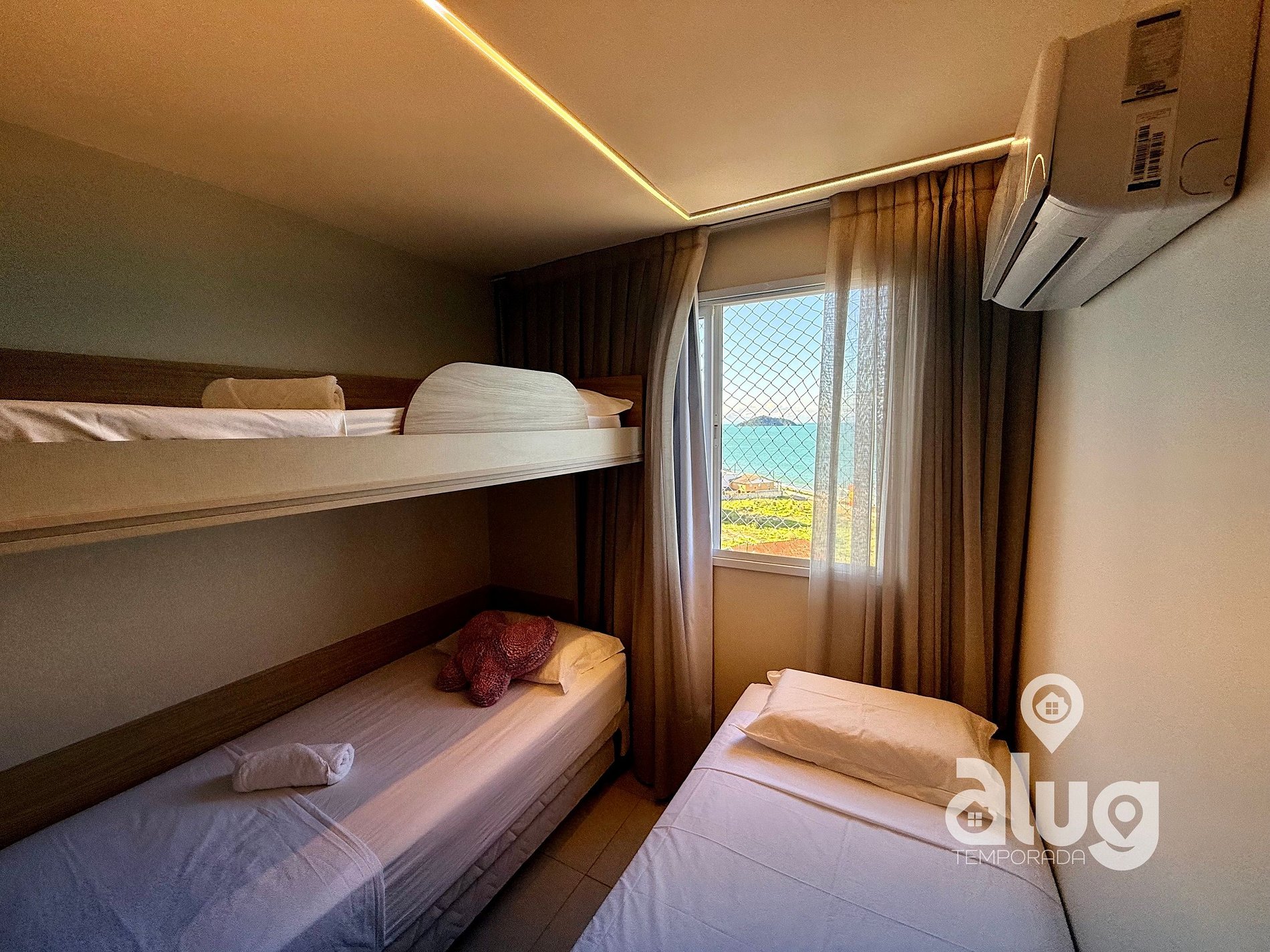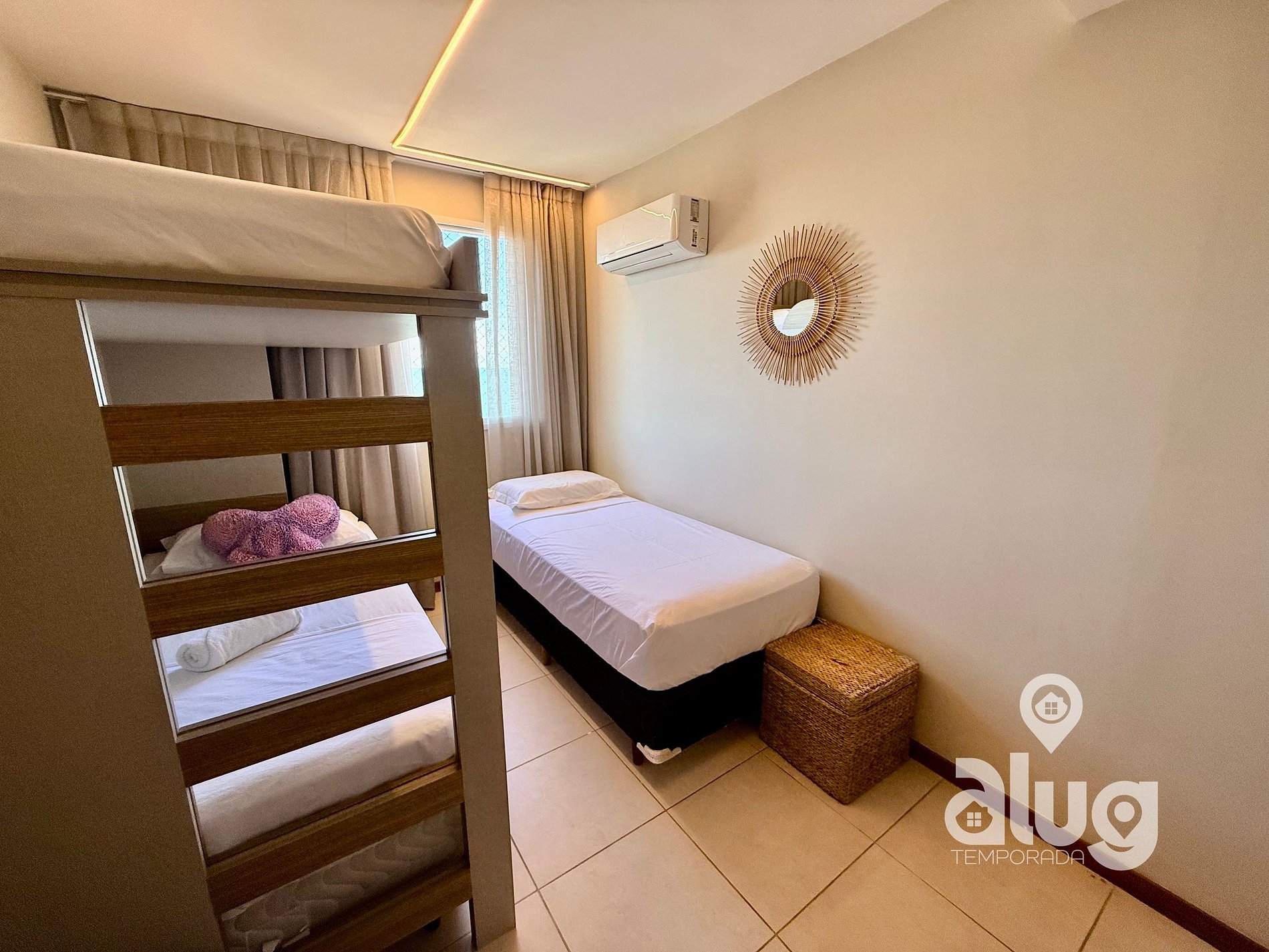 2.Quarto Triplo: Equipado com Beliche + cama de solteiro, ar condicionado e 1 colchão solteiro extra