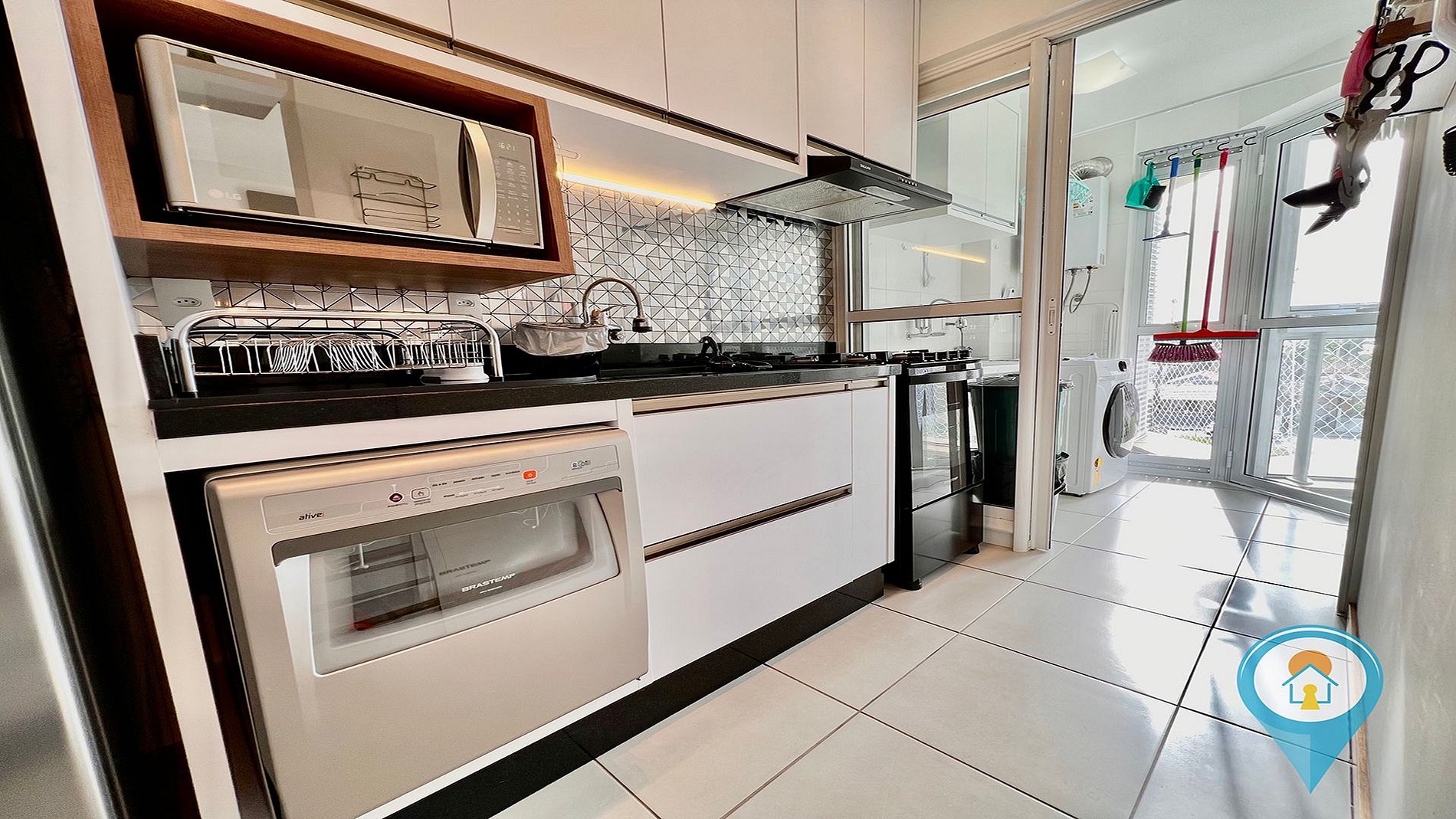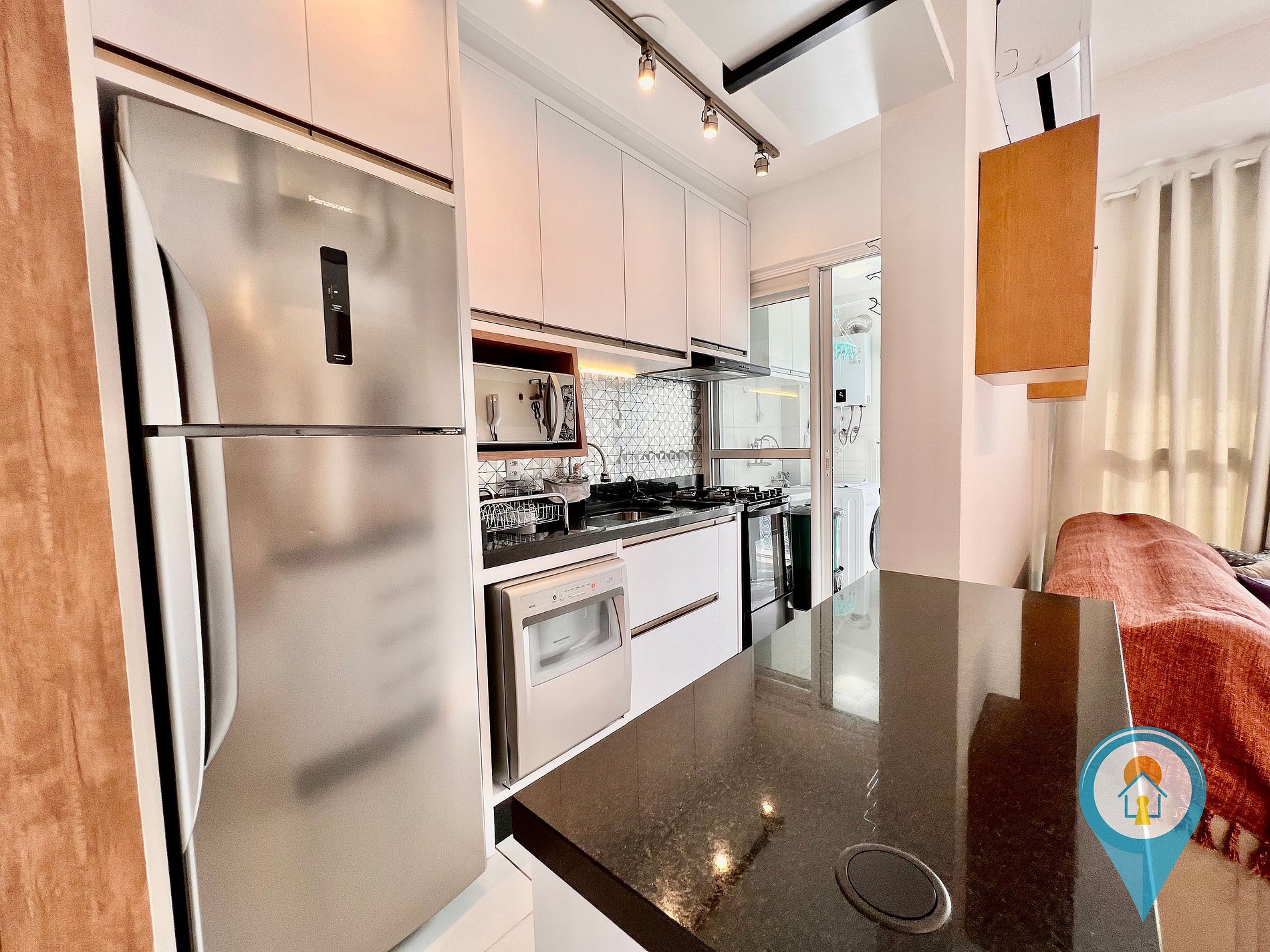 - Cozinha completa com utensílios, geladeira, fogão e pequenos eletros,