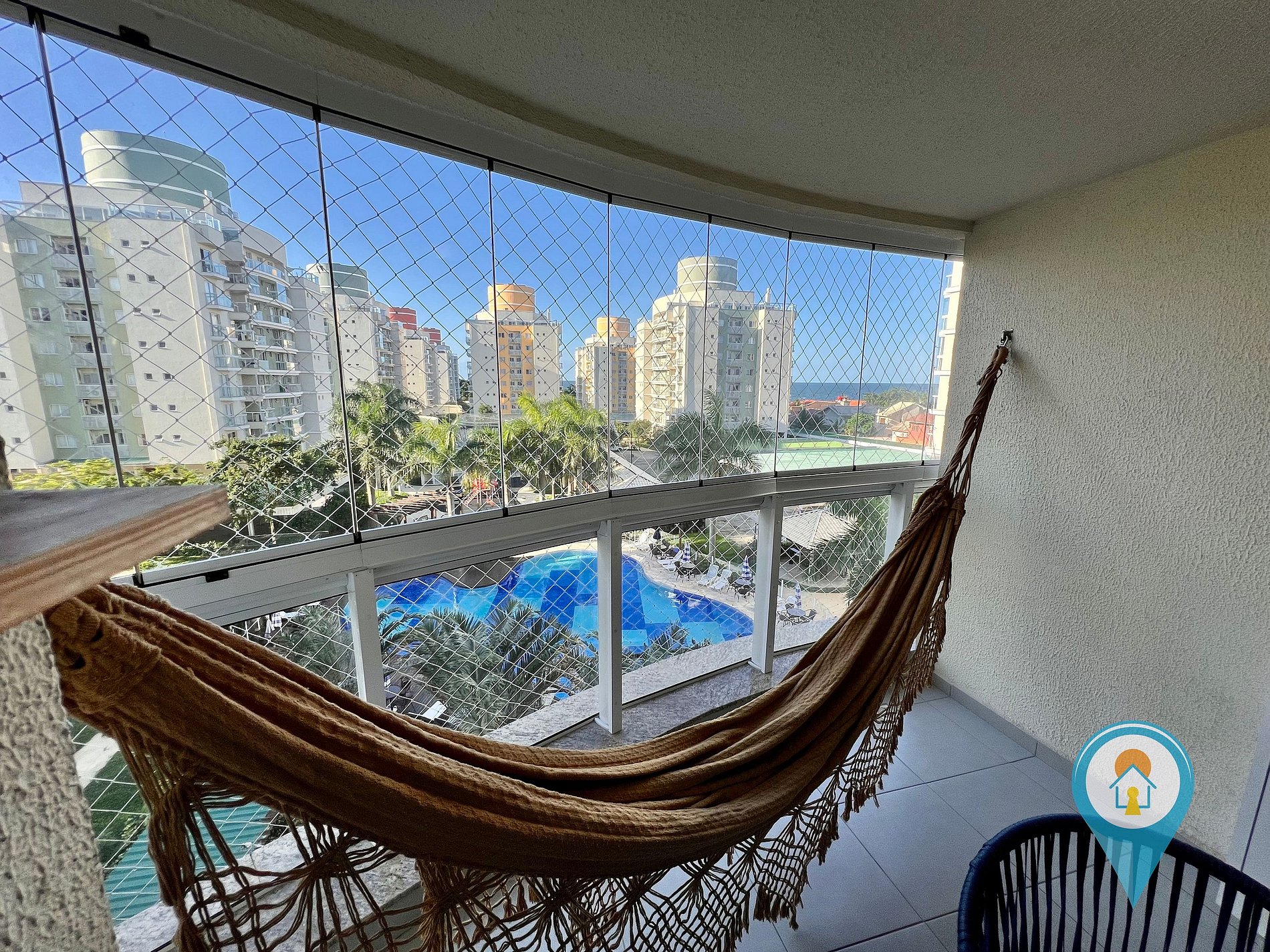 Apto LUXO em condomínio Home Club próximo a praia e ao Parque Beto Carrero World. Inclui roupas de cama, toalhas, internet Wi-fi, smart TV, cozinha completa com eletros e utensílios, telas de proteção em todas as janelas e sacadas e 2 vagas de Garagem coberta.