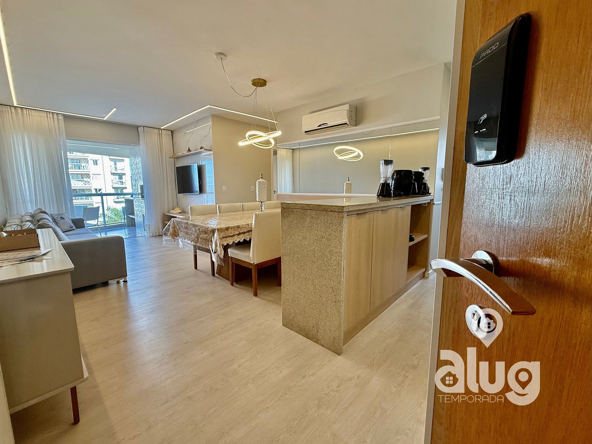 Apto confortável, com ar condicionado, cozinha completa, telas de proteção nas janelas e sacadas, inclui roupas de cama e toalhas para até 8 hóspedes.