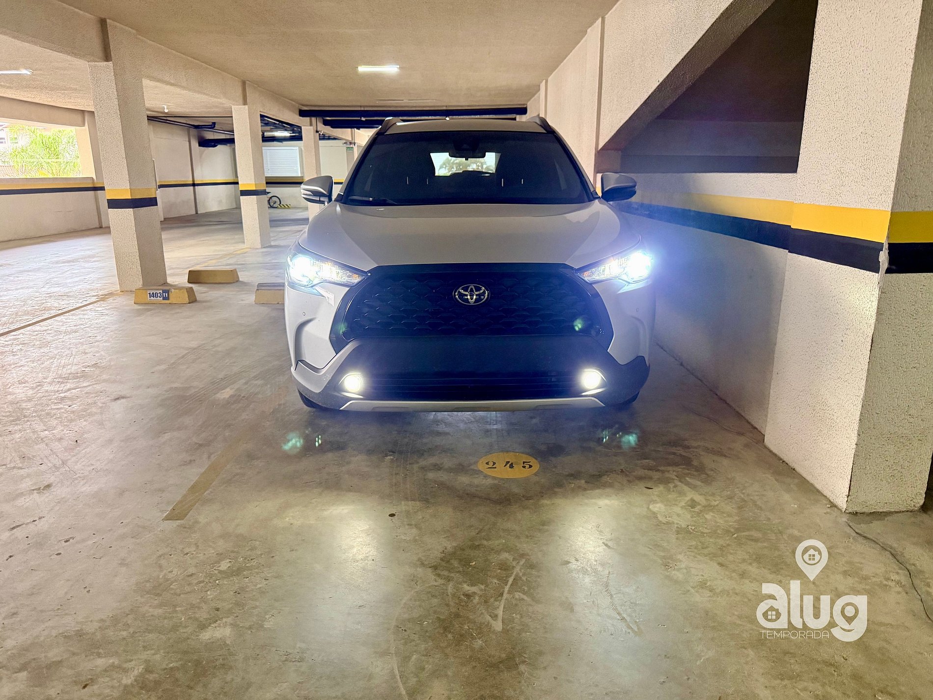 A vaga de garagem é privativa e coberta, disponível durante toda a estadia.