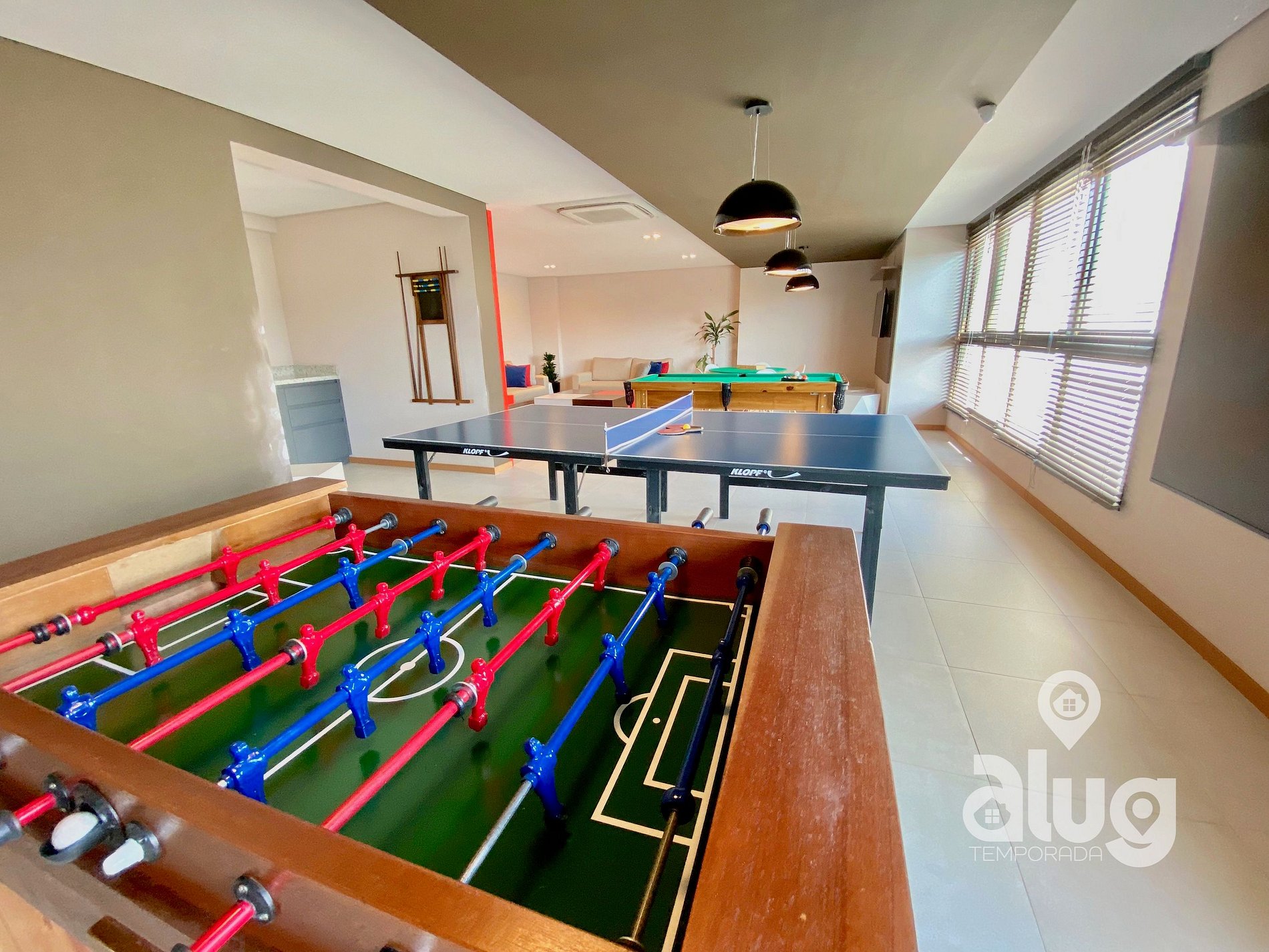 Localizado em condomínio clube, os hóspedes têm acesso a diversas opções de lazer, como piscina, sala de jogos, academia e quadra poliesportiva, proporcionando diversão para todas as idades.