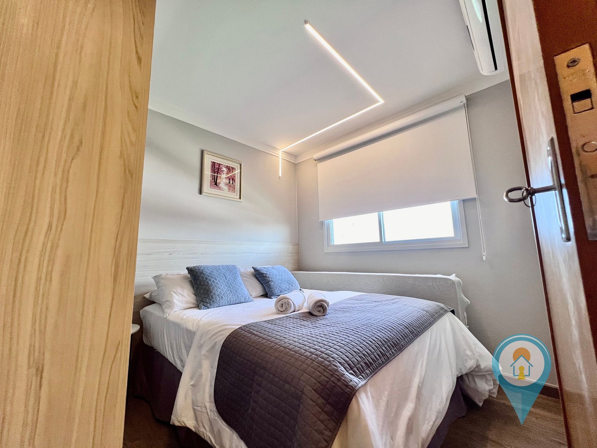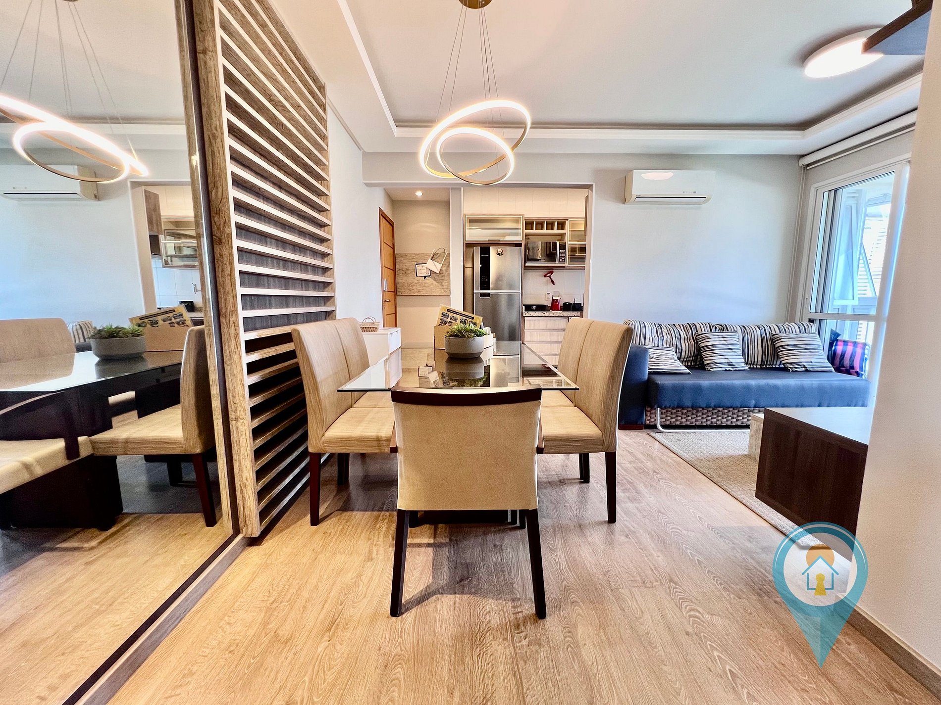 Apto aconchegante, finamente decorado com 2 quartos, sendo 1 suíte, todos com Ar condicionado e ótima internet Wi-fi fibra ótica 500 Mbps. Equipado com cozinha completa, sacada com churrasqueira e vista para o mar, TV, roupas de cama e toalhas devidamente higienizados.