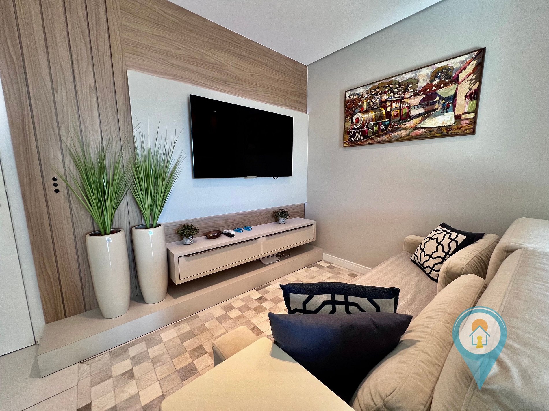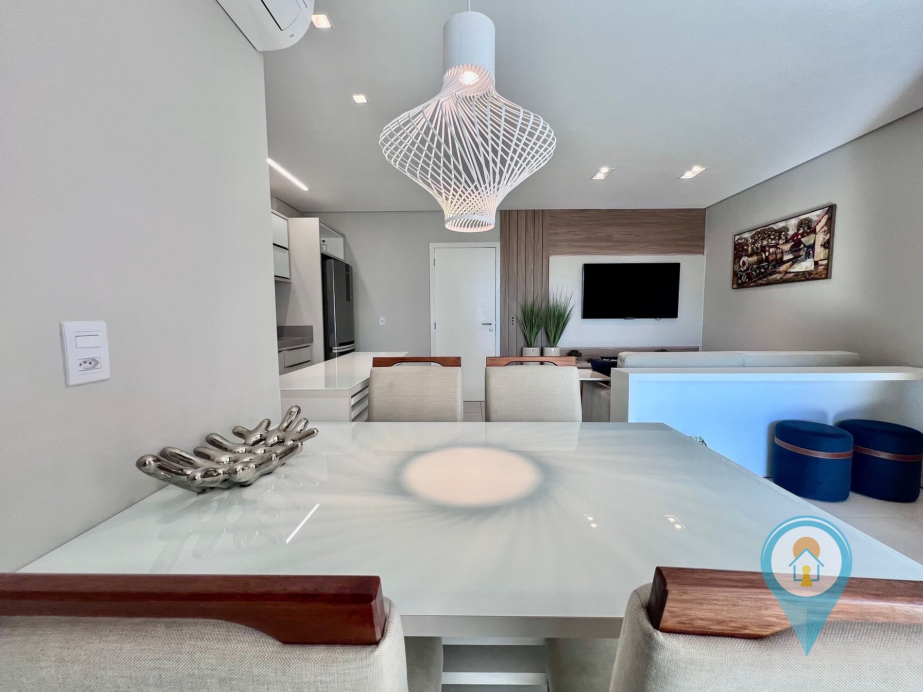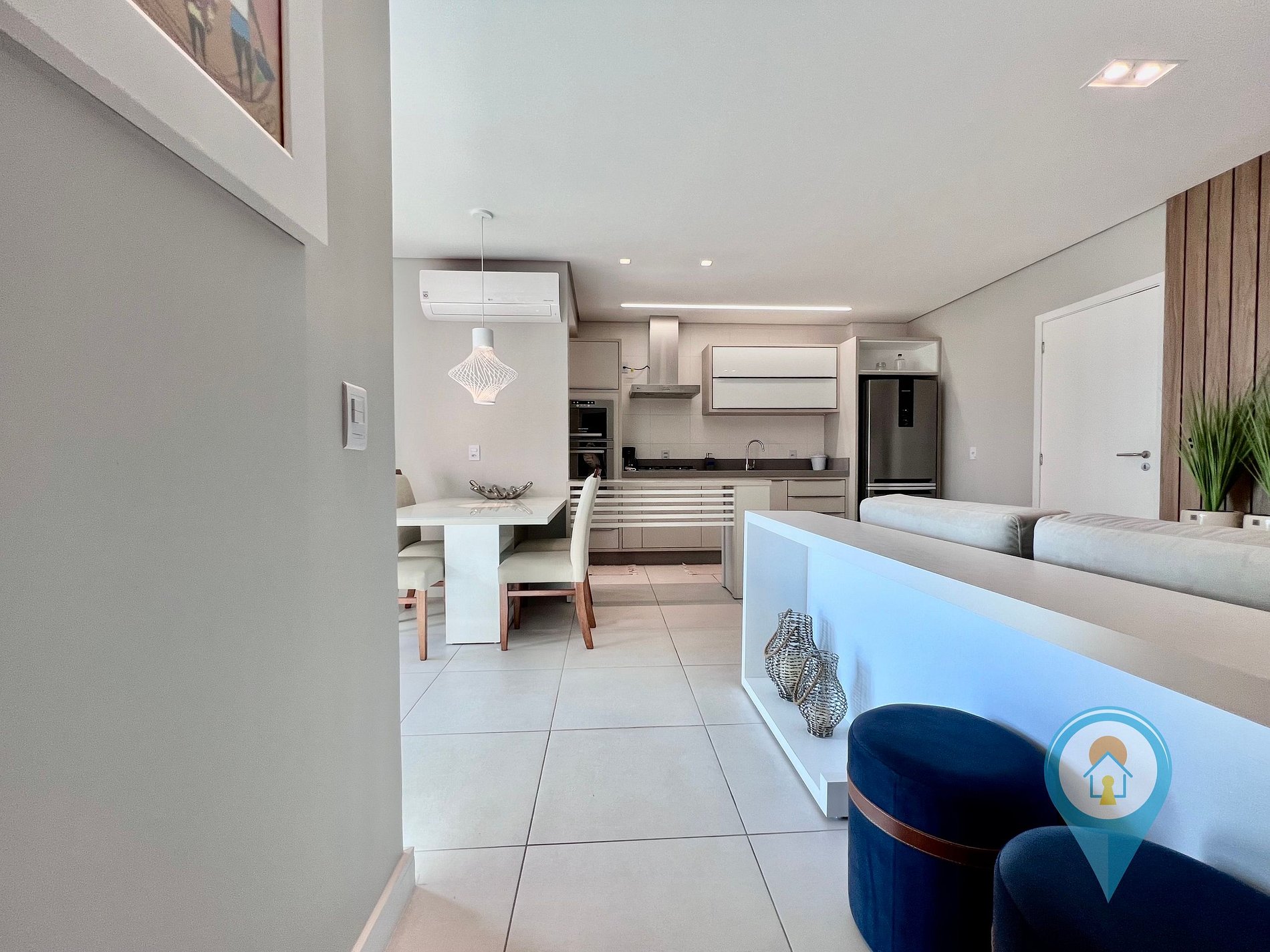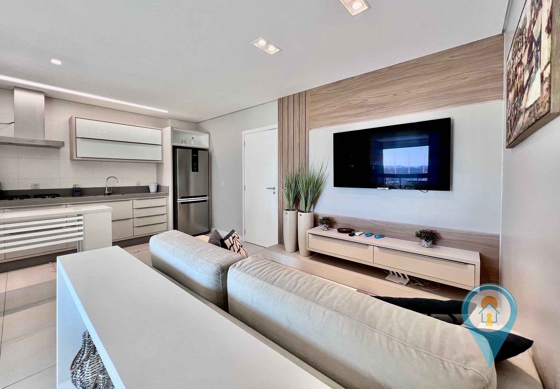A decoração é sofisticada, com tons neutros que criam uma atmosfera acolhedora e elegante. Aproveite para relaxar em um ambiente cuidadosamente projetado para proporcionar o máximo de conforto durante sua estadia
