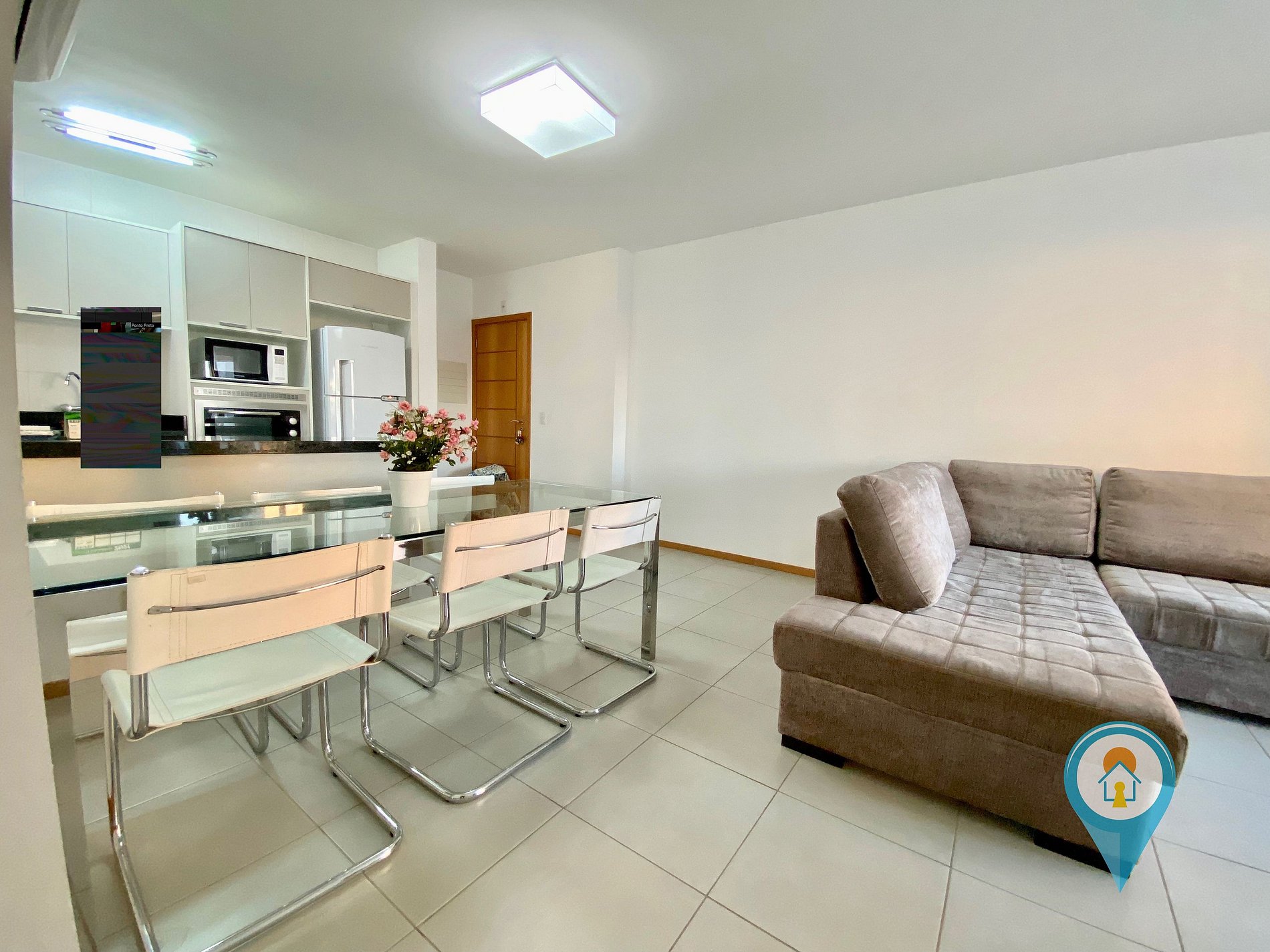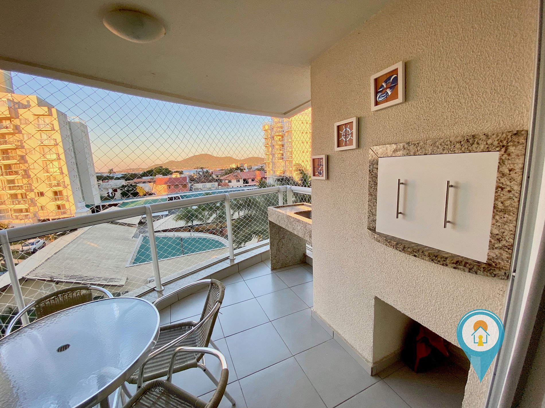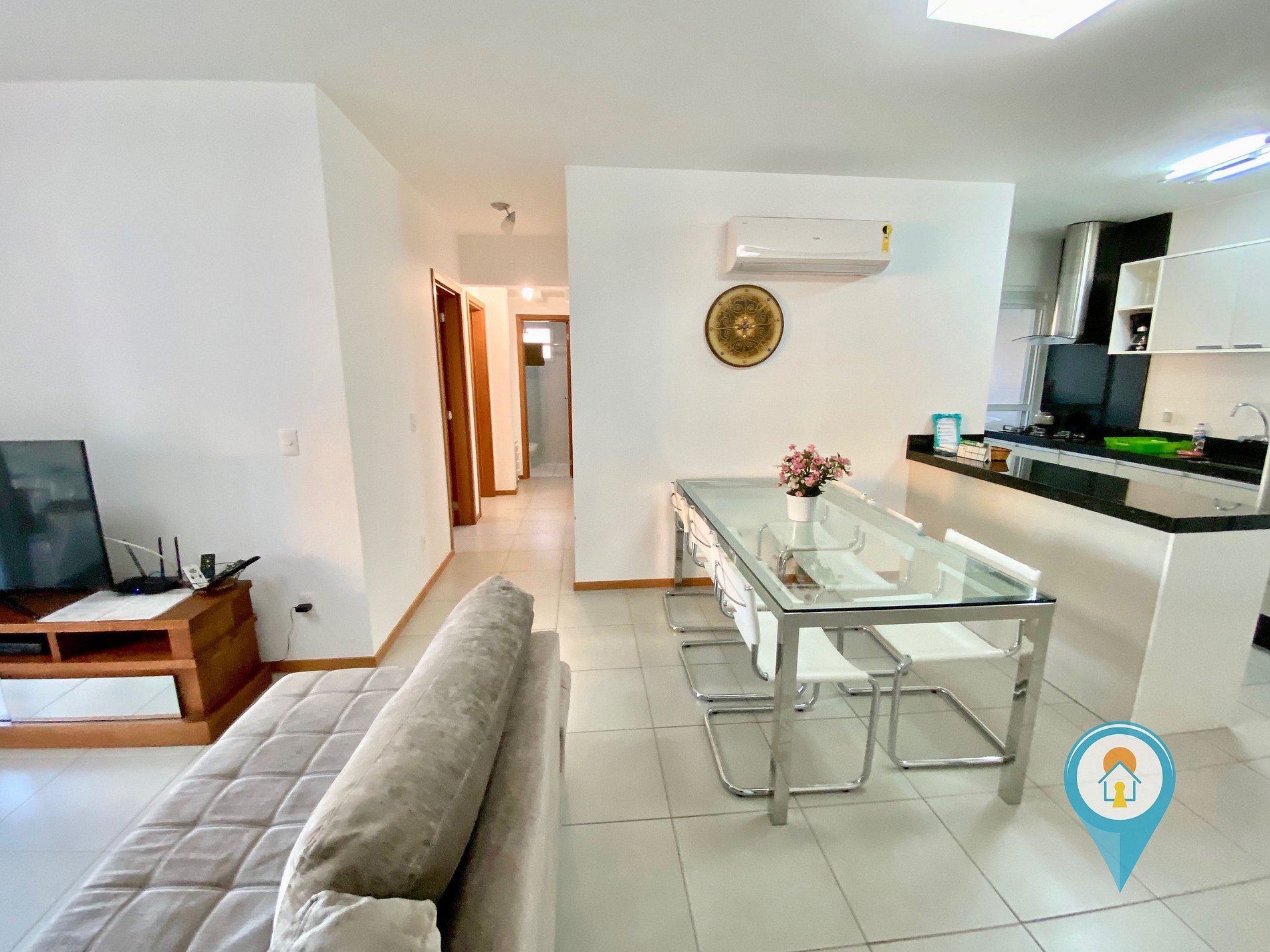 Na sala temos Ar condicionado, TV 43” e TV a cabo (Sky), Confortável Sofá e mesa de jantar. Saindo da sala você tem acesso a uma excelente sacada com churrasqueira e tela de proteção para segurança das crianças.