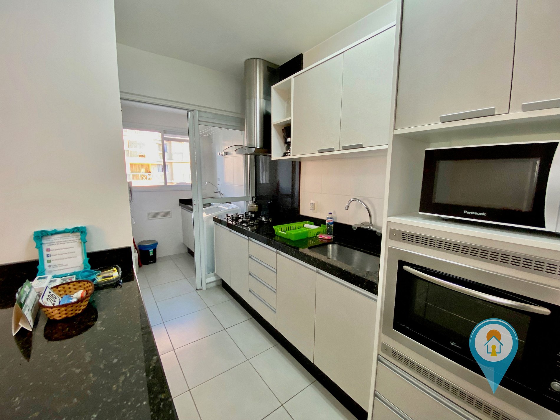 O apartamento dispõe de cozinha completa: Geladeira, microondas, fogão, e outros eletros. Também inclui utensílios - pratos, copos, talheres, panelas, panos de prato, potes e utensílios de churrasco, faca, garfo e tábua de carne.