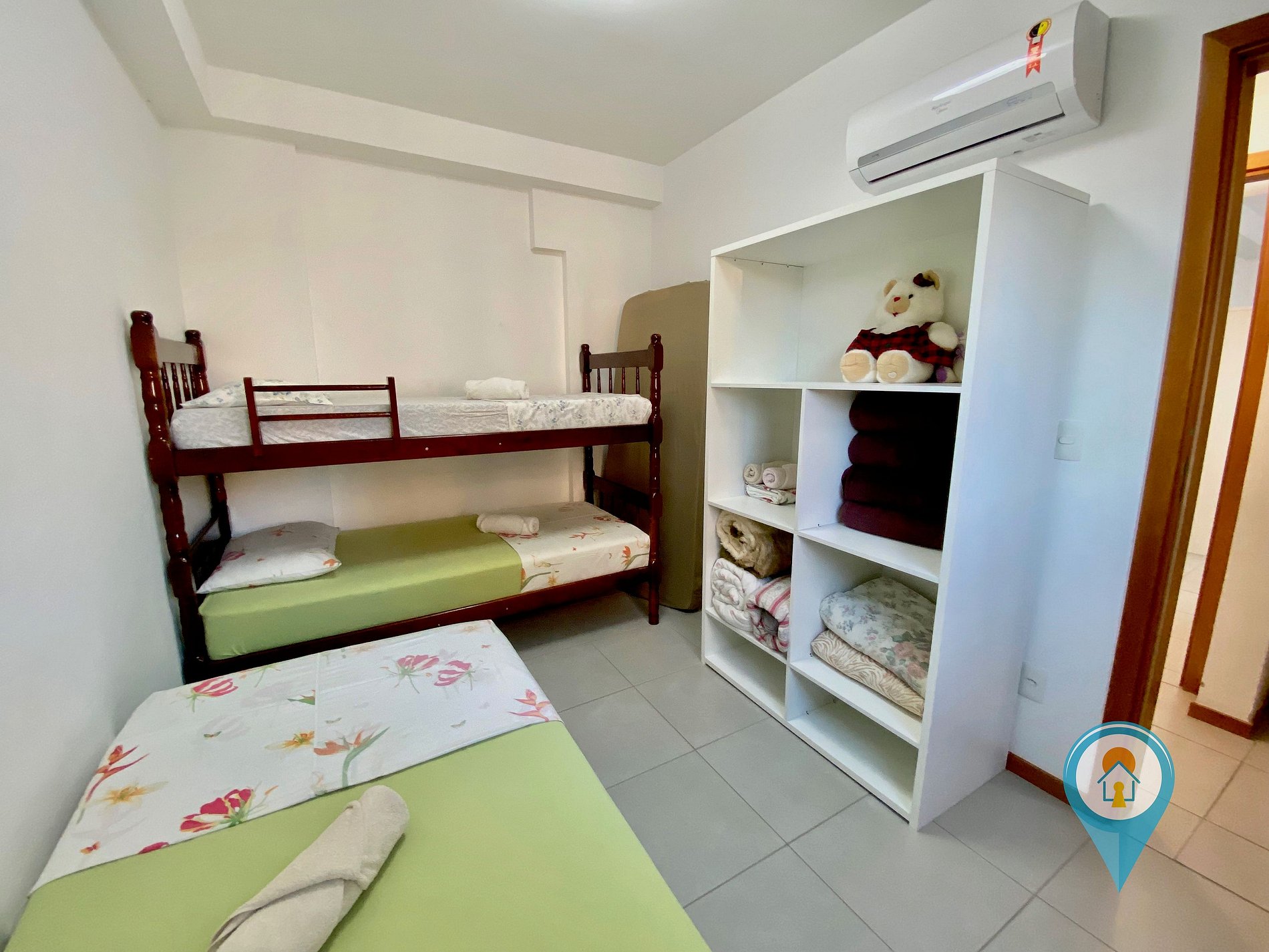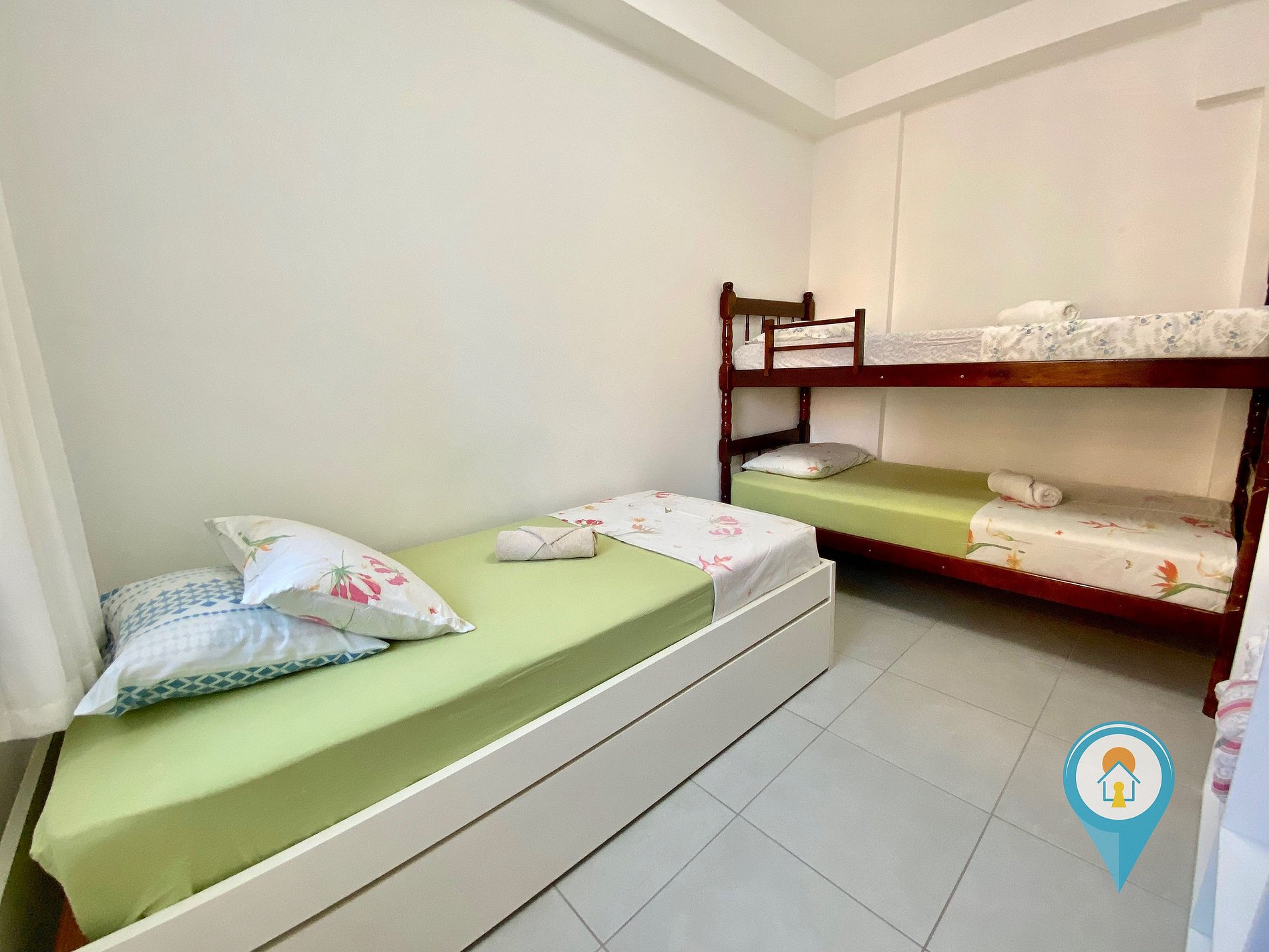 Quarto Solteiro: Equipado com 1 Beliche mais 2 camas de solteiro, comporta até 4 pessoas nesse quarto.