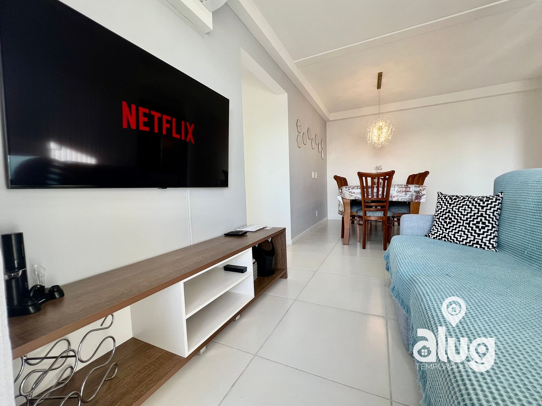 O ambiente possui Wi-Fi rápido, ar-condicionado em todos os cômodos e Smart TVs para o entretenimento de toda a família.