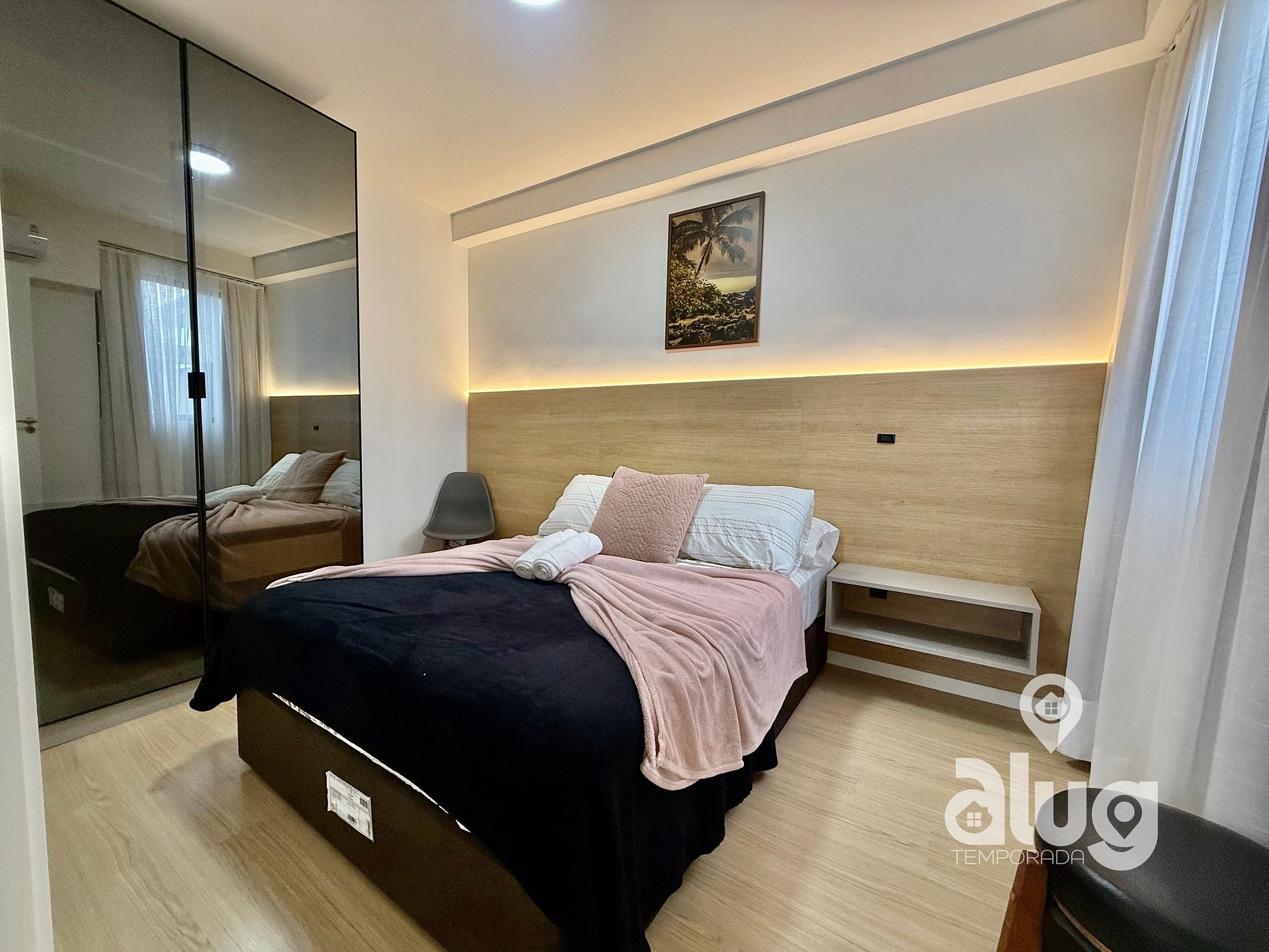 Ar-condicionado em todos os cômodos, Wi-Fi rápido, cozinha equipada, estacionamento gratuito e uma sacada perfeita p/ relaxar e contemplar o horizonte.